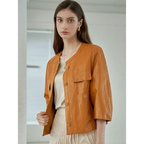 [르니앤맥코이]위클리 노카라 인조 가죽 세미 크롭 블루종 점퍼 ML10JK070FCY
