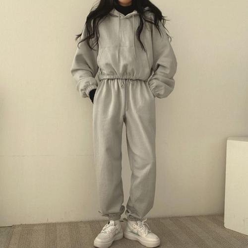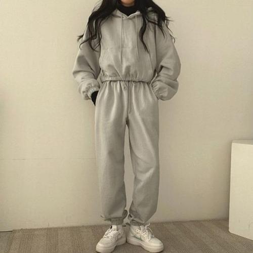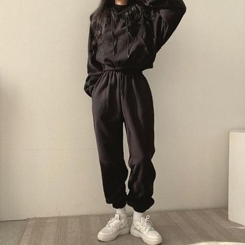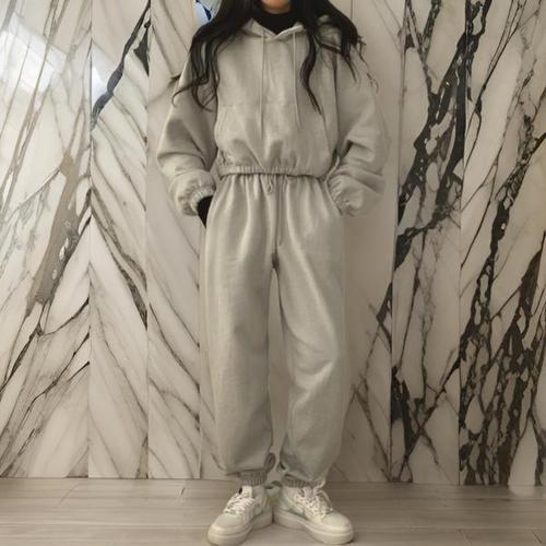 [다잇템]여자 데일리 코튼 크롭 후드 조거팬츠 세트