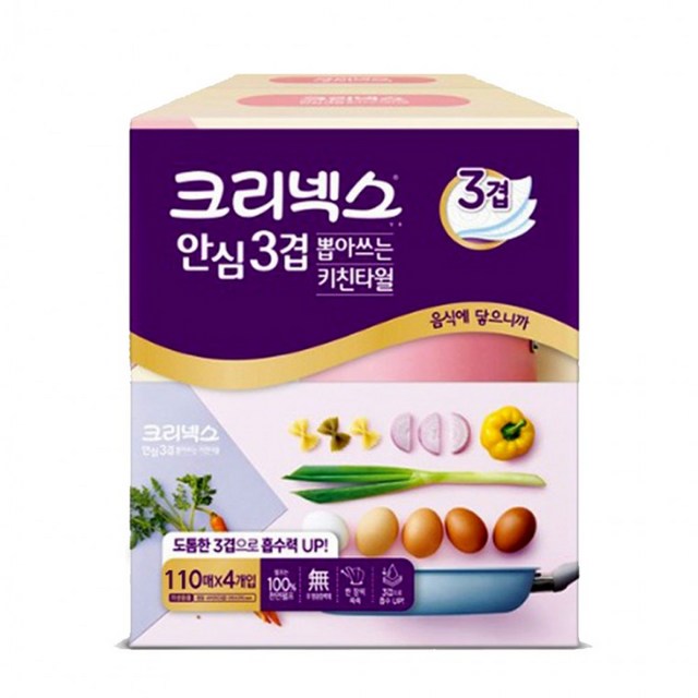 크리넥스 안심 3겹 뽑아쓰는 키친타월 140매 4개입 1팩