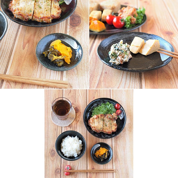 [해외] 블랙 크리스탈 미노 도자기 반찬 찬기 메인 다용도 접시 그릇 3종 택1