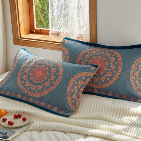 에스닉 큰 베개커버 2세트 순면 누빔- 꽃밭