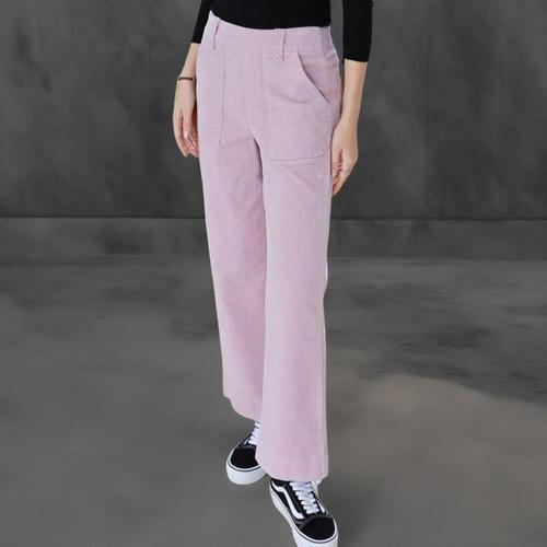 Vezri 여성용 겨울용 팬딩 팬츠 와이드핏 큰 주머니 밴딩 허리 캐주얼 패션
