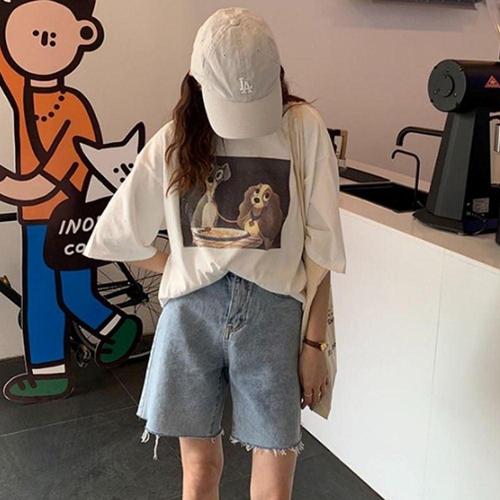 SAHINER 여성 데님 5부 팬츠 찢청 넉넉한 핏 여름용 ADK35