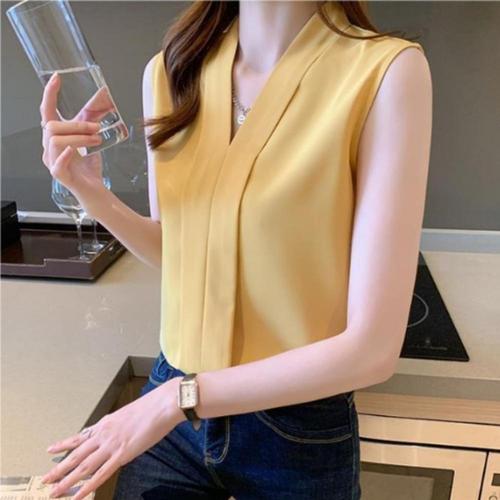 [다잇템]여자 V넥 출근룩 슬리브리스 클래식 블라우스