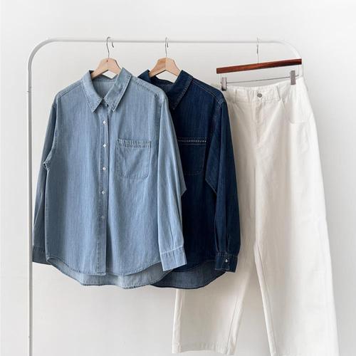 [다잇템]여자 클래식 진 내추럴 박시핏 셔츠