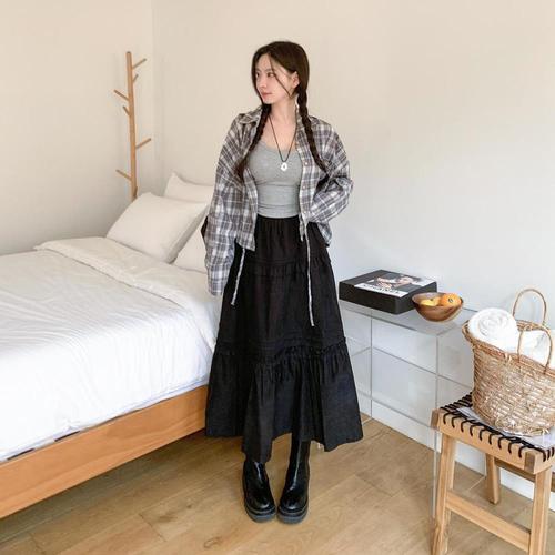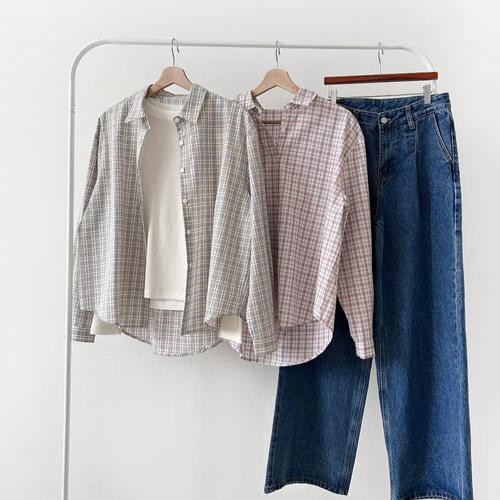[다잇템]여성 남방 내추럴 격자 클래식 빅사이즈 디자인