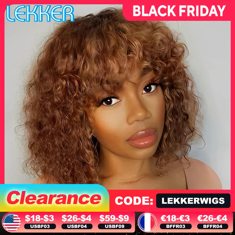 레커 컬러드 숏 픽시 아프로 킨키 컬리 밥 100% 인모 가발 여성용 브라질 레미 헤어 옴브레 브라운 클리어런스 진저