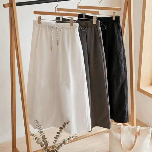 [다잇템]여자 SS 쿨링 고무줄 면혼방 롱스커트