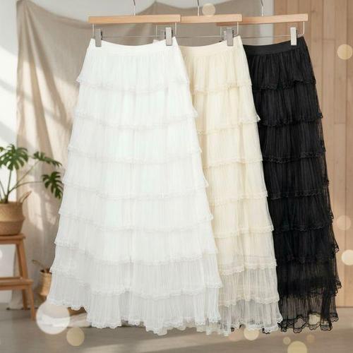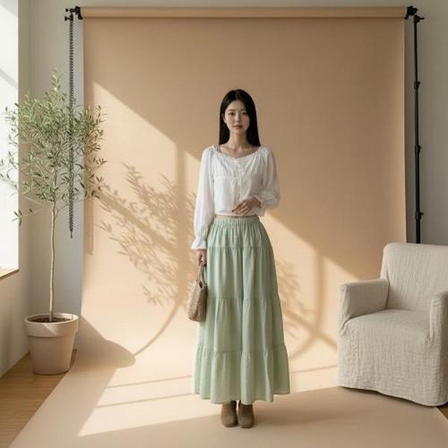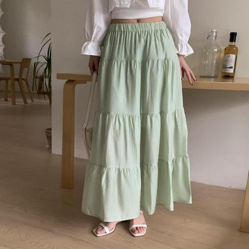[하프클럽/]여성 쿨링 티어드 롱플레어 봄여름 스커트