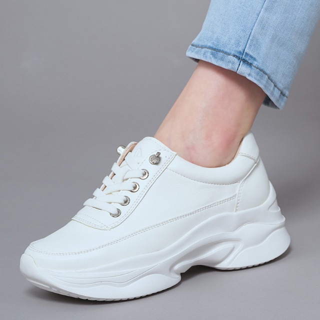 슈리오 여성용 가죽 키높이 스타 캔버스화 5cm