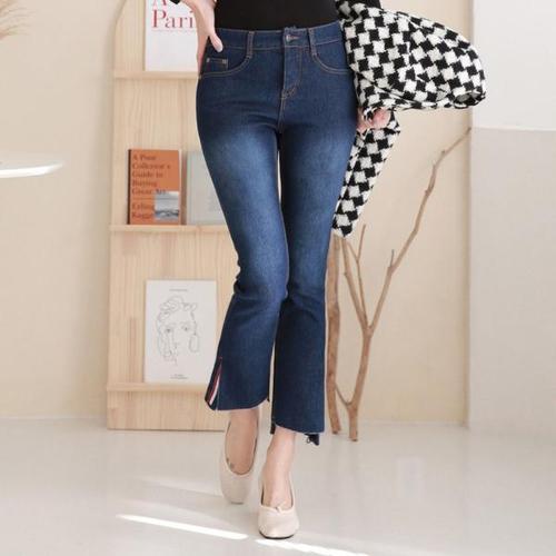 [에이치플러스몰]키작녀 슬림핏 세미부츠컷 청바지 데님 스타일