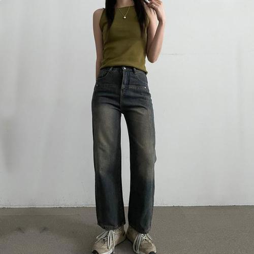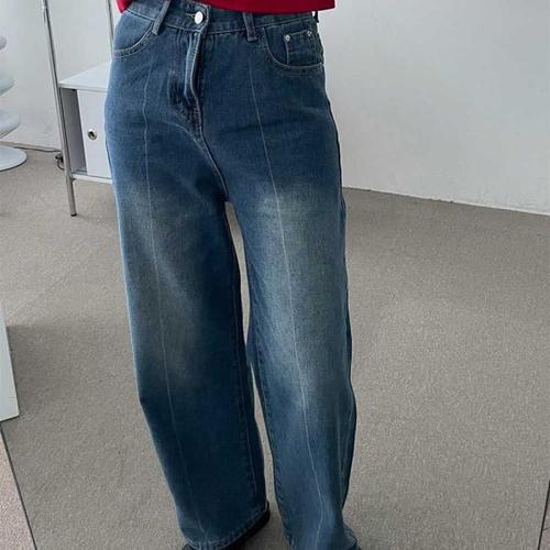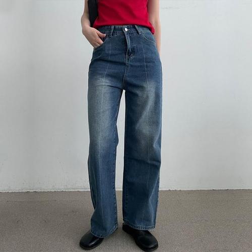 여성 가을 세미 와이드 빈티지 데님 일자 밴딩 청바지 흑청 연청 키작녀