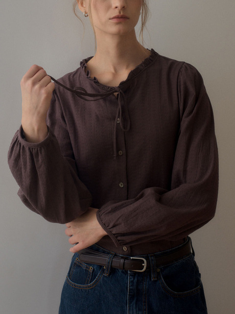Gymystars 여성을위한 새로운 트렌디 한 모조 데님 블라우스 탑 긴 퍼프 슬리브 보우 장식 하이 넥 여성 가을 셔츠