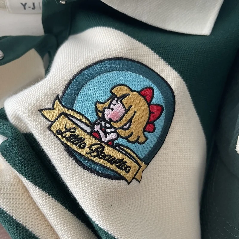초대형 사이즈 300 파운드 폴로 셔츠 스트라이프 대학 스타일 수 놓은 캐주얼 루즈 올 매치 후드 여성 의류