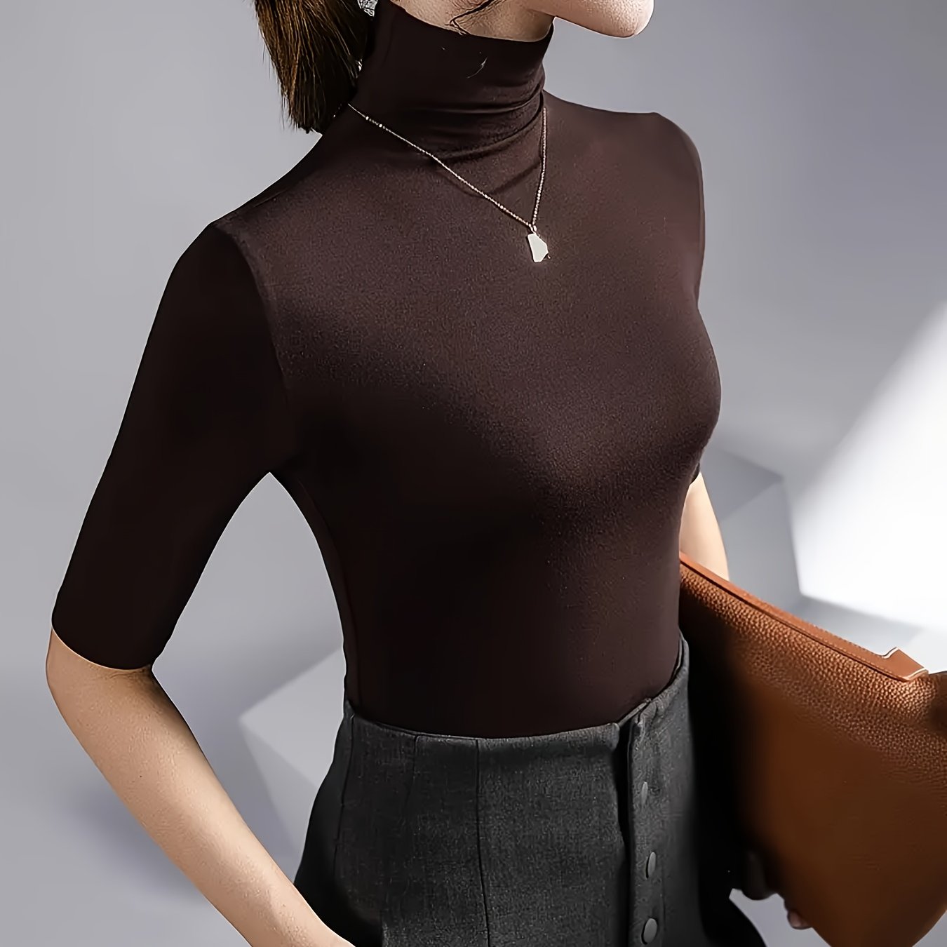 TEMU 여성용 우아한 터틀넥 탑 - 슬림핏 블라우스, 시크한 오피스 & 파티 셔츠, 비침 방지 포멀 & 일상 상의 - 봄/가을/여름 워드로브 필수품, 계절 패션, 세련된 스타일, 매끄러운 질감, 다용도 의류, 현대적 패션, 가벼운 소재, 스타일리시 셔츠, 패션 애호가를 위한