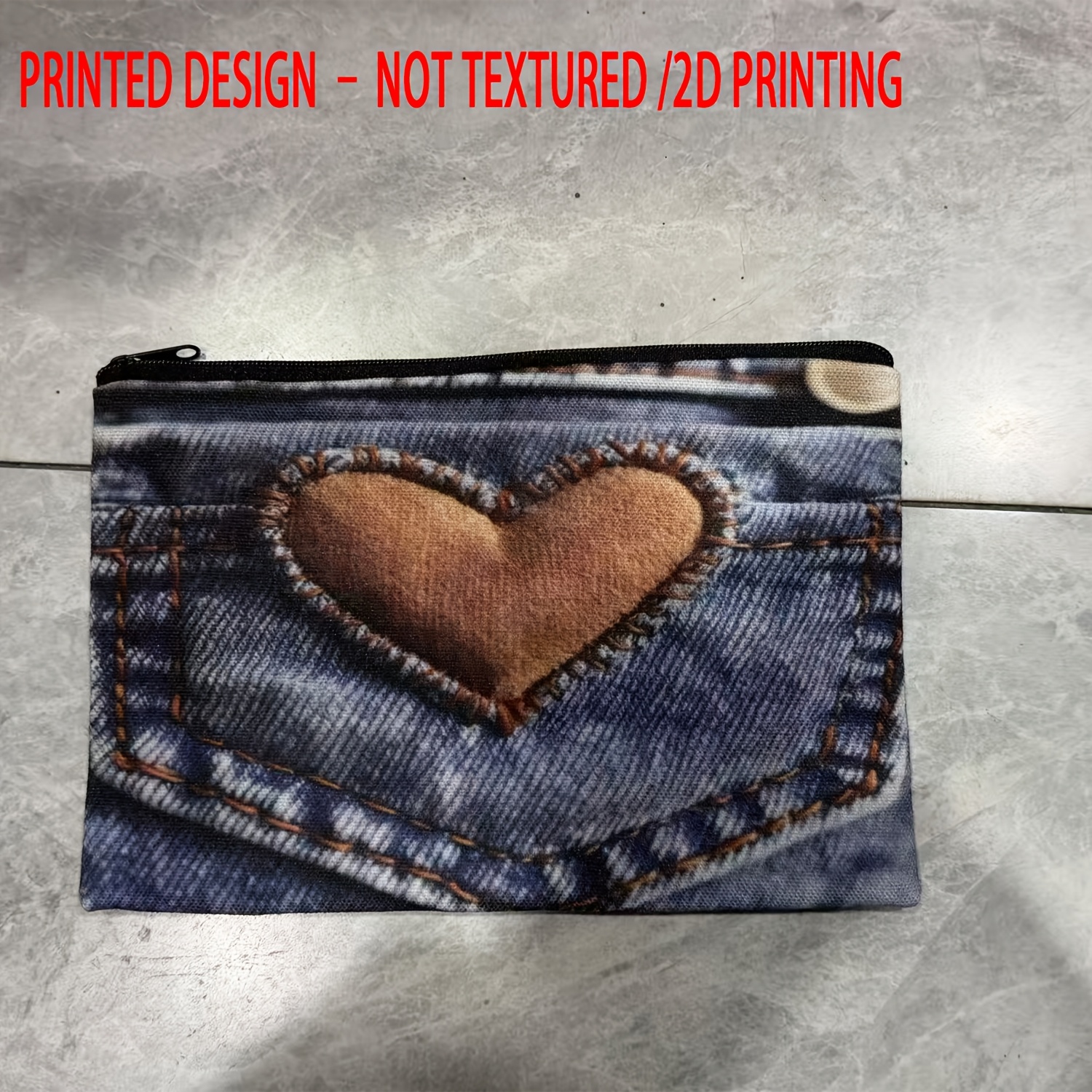 TEMU 빈티지 데님 하트 포켓 워시백 1개, 2D 평면 프린팅, 가볍고 내구성이 뛰어나며 색바램 방지, 다기능 휴대용 세면도구 가방, 일상용/여행/휴가/학생/피트니스에 적합, 여성을 위한 이상적인 선물, Ins 스타일 패션 선물, 2D 평면
