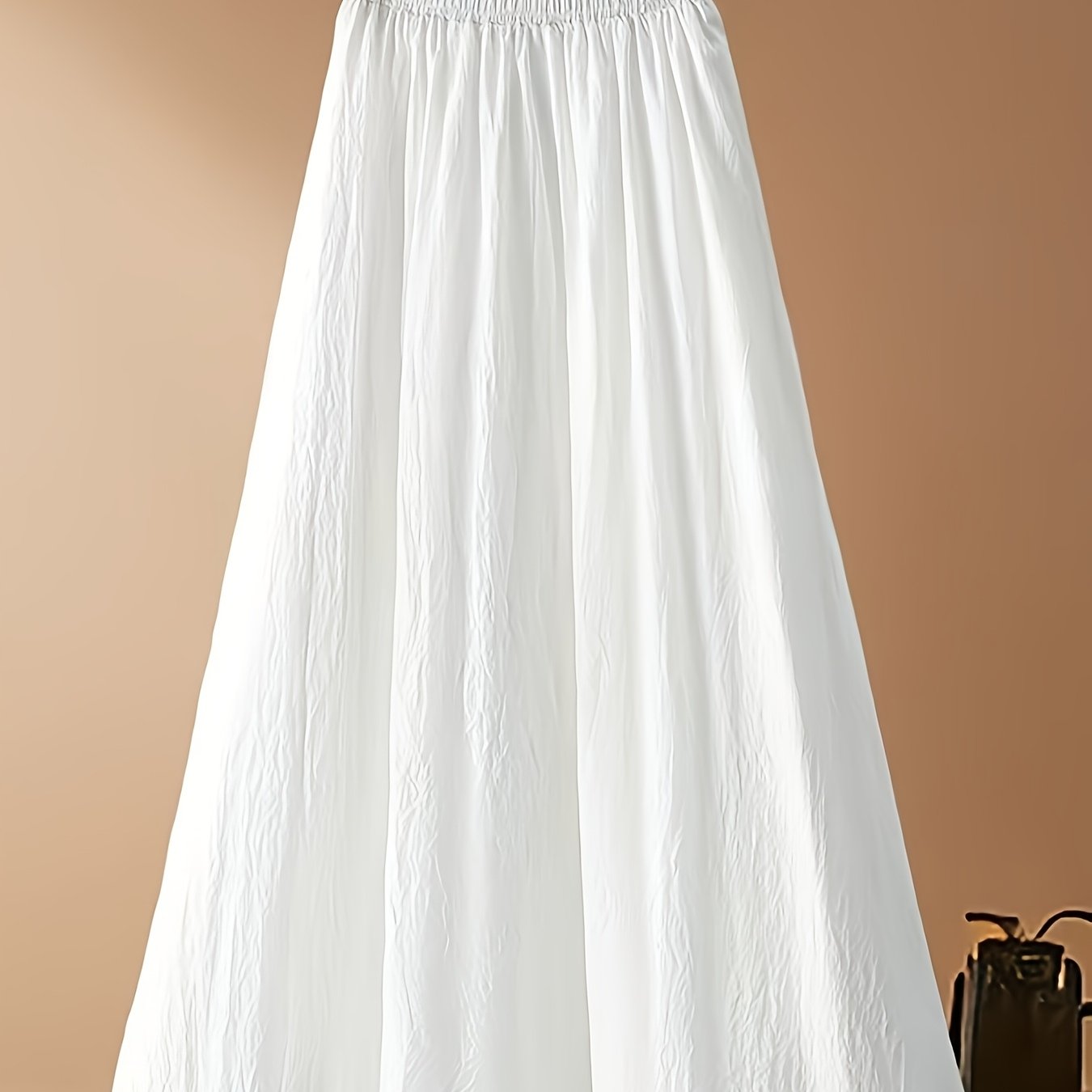 TEMU 우아한 화이트 러플 밑단 롱 스커트 | 단색, 하이웨스트, 플레어 A라인, 봄/여름용 케이크 스커트