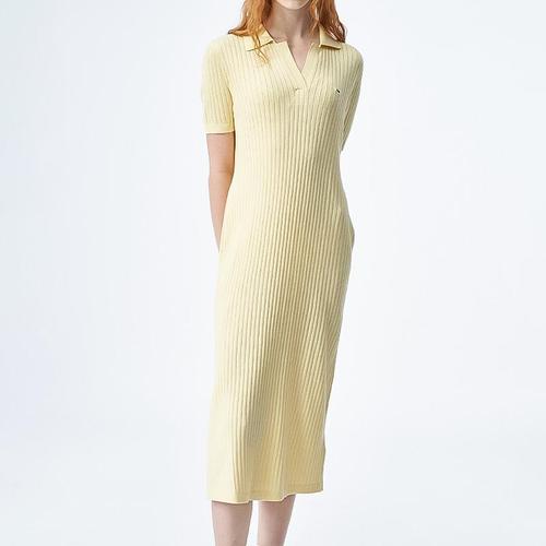 [타미힐피거]타미힐피거 여성 니트원피스 립드 스웨터 폴로 드레스 옐로우 T32D6WOP05TWT2