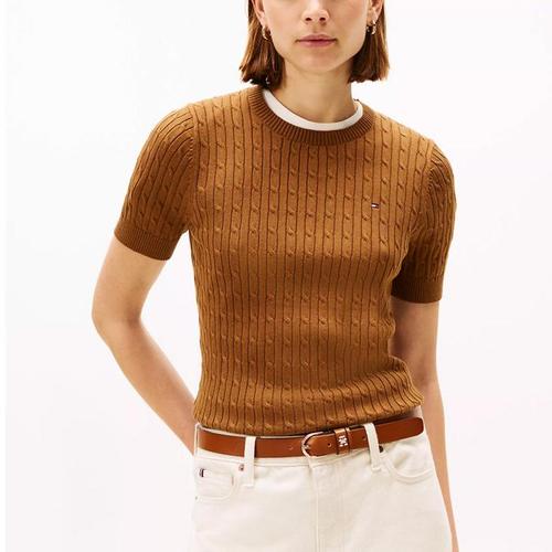 [해외배송] 타미 여자 케이블 반팔 스웨터 Khaki