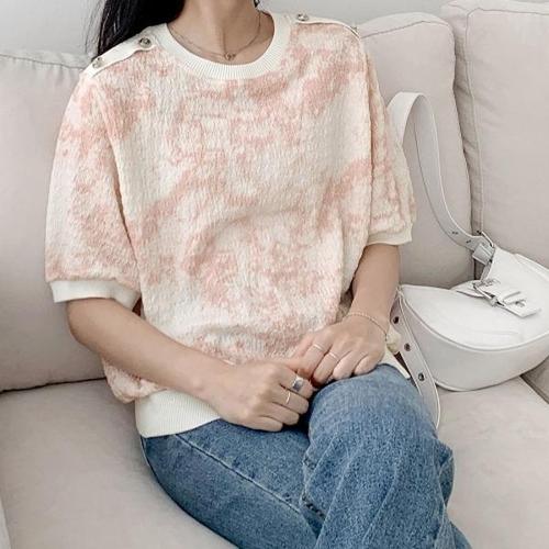 [엄지척]여성 타이다이 나염무늬 레터링 세미크롭 반팔 티셔츠_19609687_667501