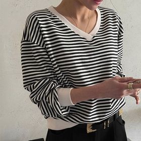 한국 스타일 매운 소녀 스타일 반팔 V넥 탑 여성 슬림핏 긴팔 티셔츠 초가을 신상 출퇴근룩