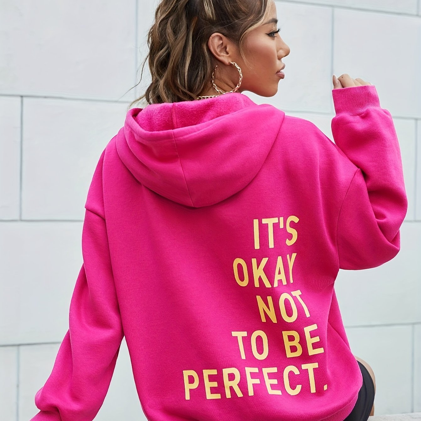TEMU 축제 분홍 후드티 스웨트셔츠: 가을/겨울에 완벽 - 레터 프린트, 일반 핏, 포켓 디테일