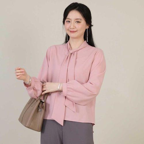 [애비뉴투지]엄마옷 드랍 스카프 타이 일체형 단추 오픈 여성 정장 봄 가을 긴팔 블라우스 B04601