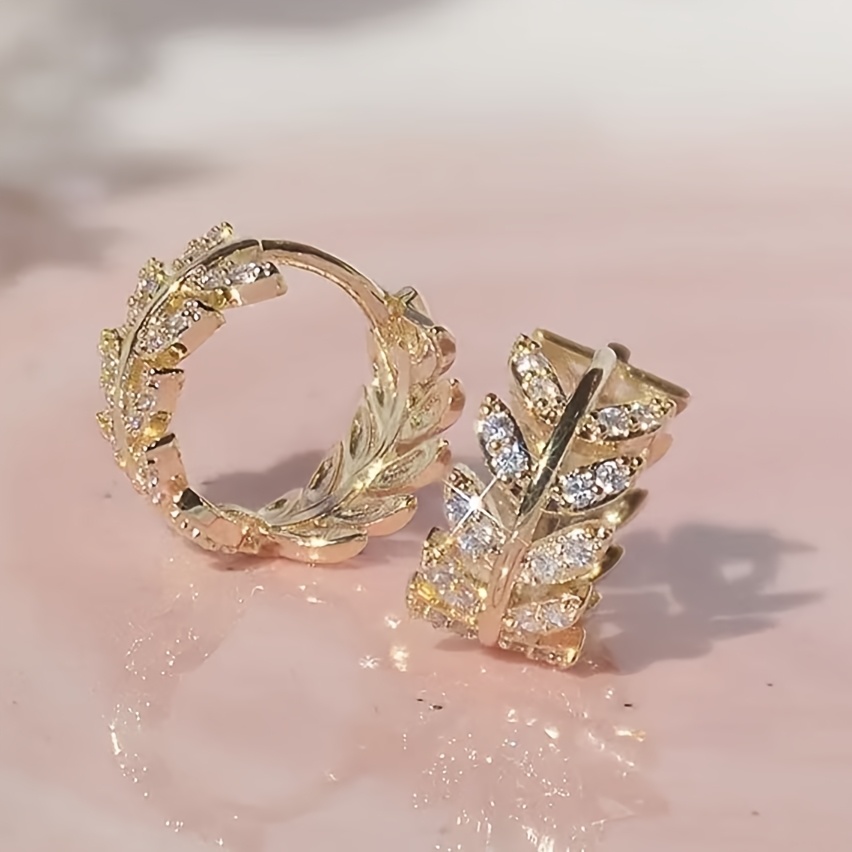 TEMU 정교한 올리브 가지 잎 작은 원형 귀걸이, 우아하고 패셔너블한 스타일 귀걸이, 여성 파티, 결혼식 및 생일 선물 주얼리 선물에 적합, 정교하고 다재다능함 - 가볍고 편안함, 데일리 착용 귀걸이