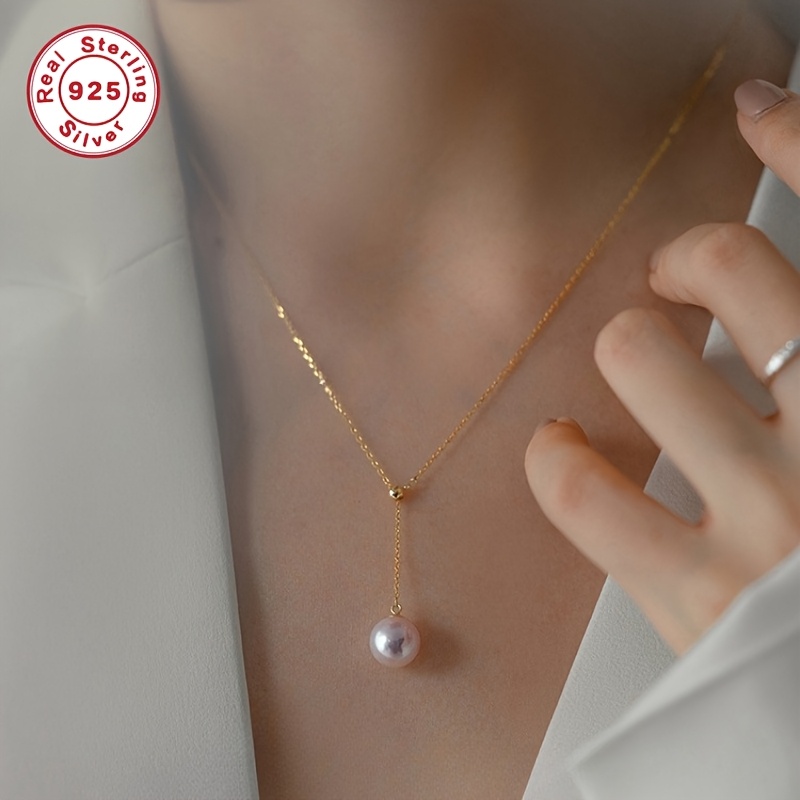 TEMU 우아한 18K 금도금 Y자형 목걸이, 단일 모조 진주 펜던트 | S925 925 실버, 연회, 파티, 결혼 기념일, 십 대를 위한 선물로 이상적, 십 대용|은목걸이
