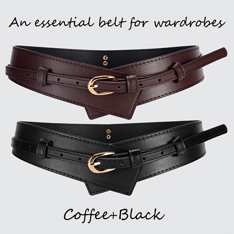 TEMU 여성용 2-in-1 분리형 PU 벨트 | 변환 가능 허리 밴드, 드레스, 코트 & 스웨터에 다용도, 세탁 불가, 아연 합금 골드 버클 포함