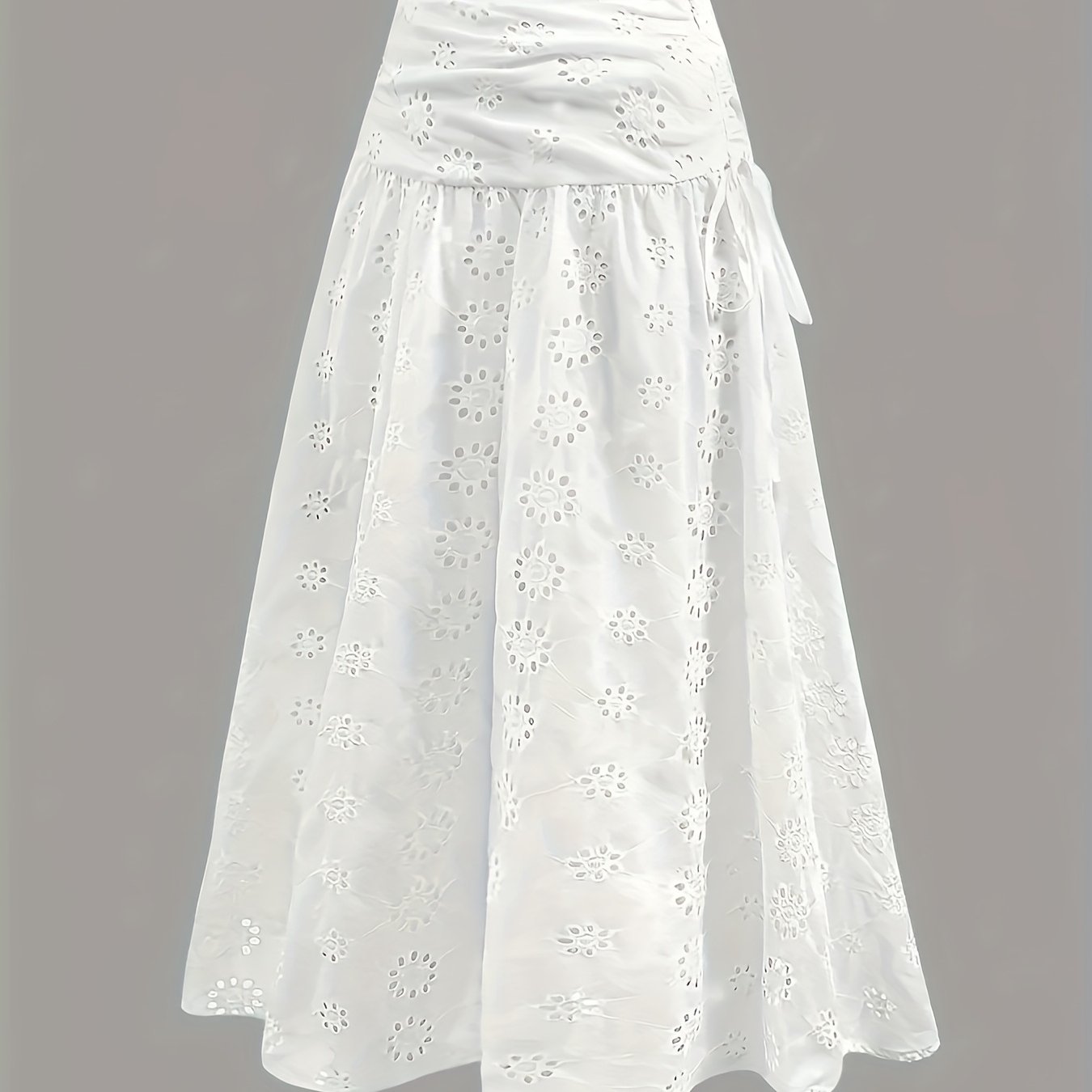 TEMU 여름 여성 레트로 단색 할로우 아웃 리본 A라인 스커트