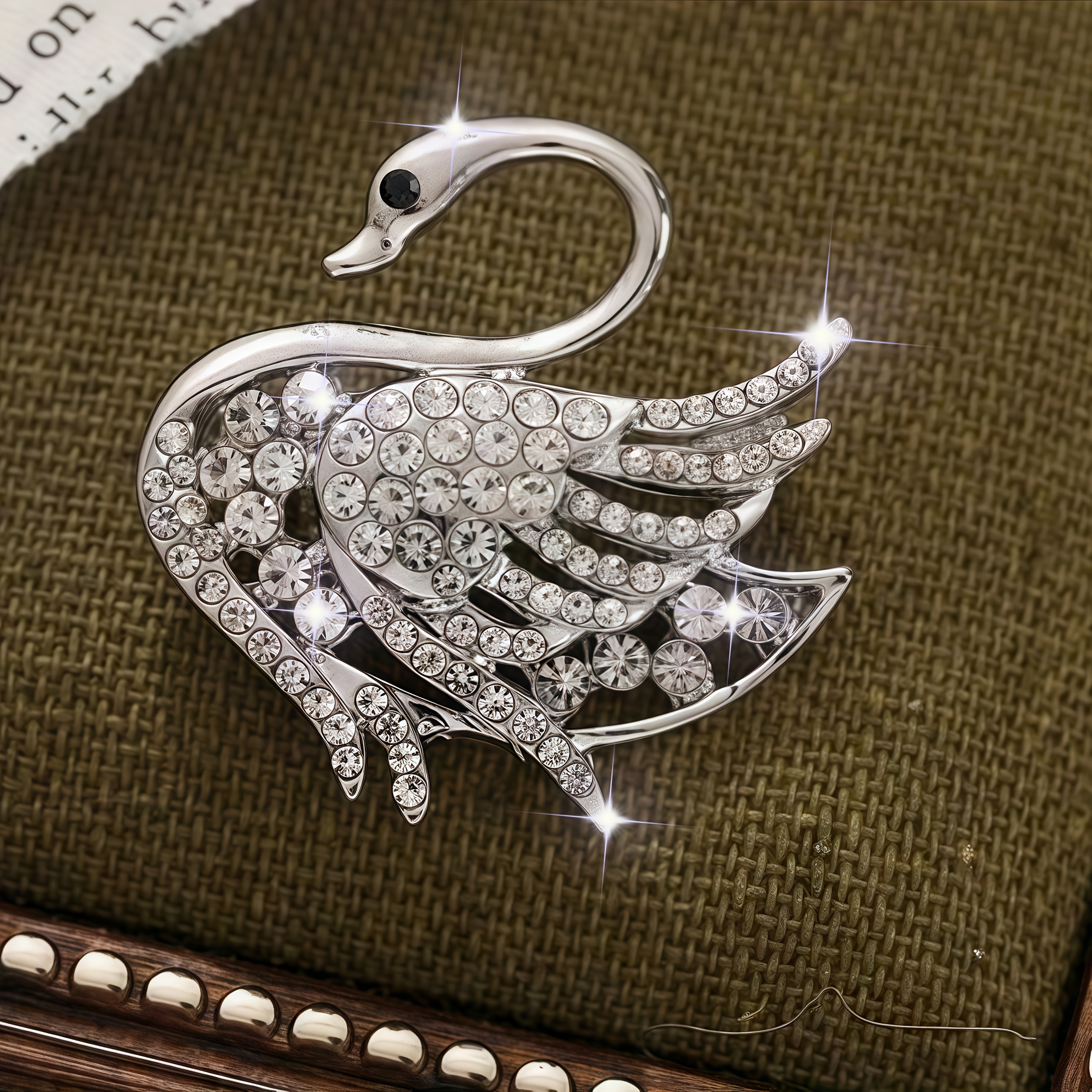 TEMU 백조 모양 스파클링 라인스톤 고정식 의류 장식 액세서리, 동물 테마의 우아한 의류 액세서리, 일상복 및 축제용으로 적합