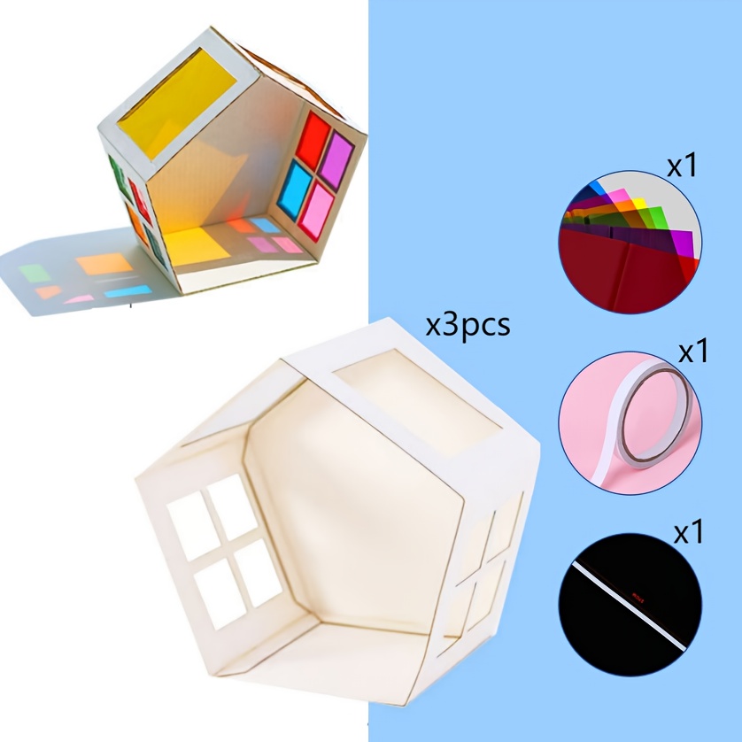 TEMU 3세트 수제 종이 합성 빛과 그림자 하우스 재료 팩, 직접 만들 필요 (하우스 카드보드 3세트, 종이 7매 포함), 완성된 제품은 바닥에 두거나 벽에 걸어 사용 가능, 미니어처 하우스, 미니어처 하우스 diy, 미니어처 집, 모형집, 집모형, 미니어처 하우스 대형, 만드는 집, 오브제