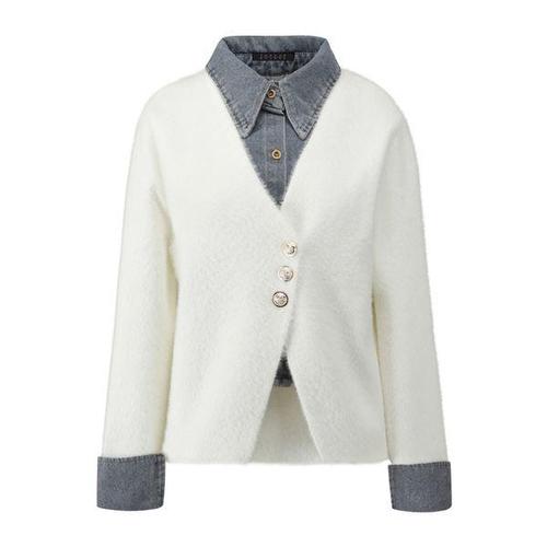 [탱커스]레이어드 셔츠 배색 니트 가디건 (TX4CD012L0)