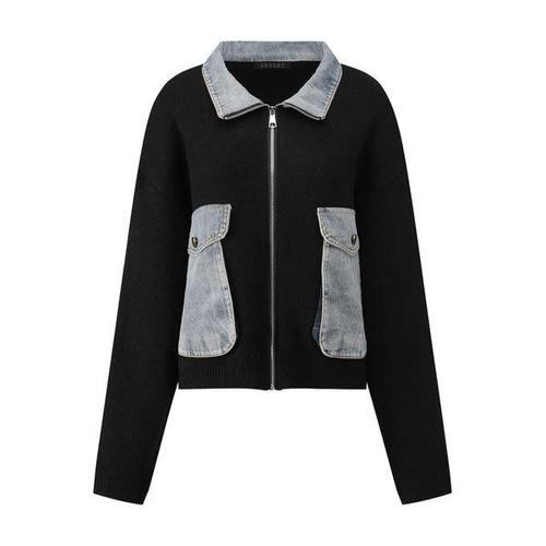 [탱커스]데님 카라 배색 포켓 집업 니트 자켓 (TX4JK005L0)