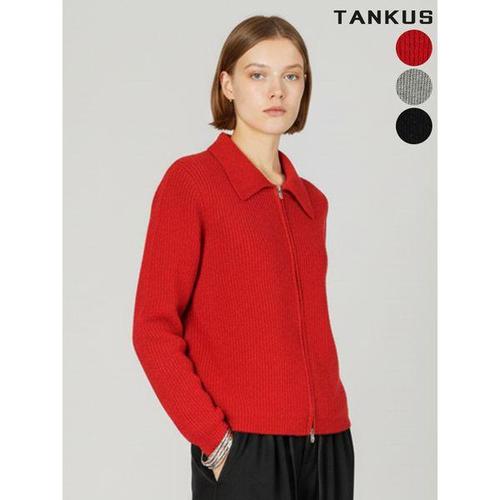 [탱커스]여성 쫀쫀 카라 골지 집업 가디건