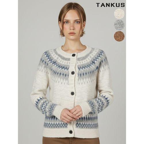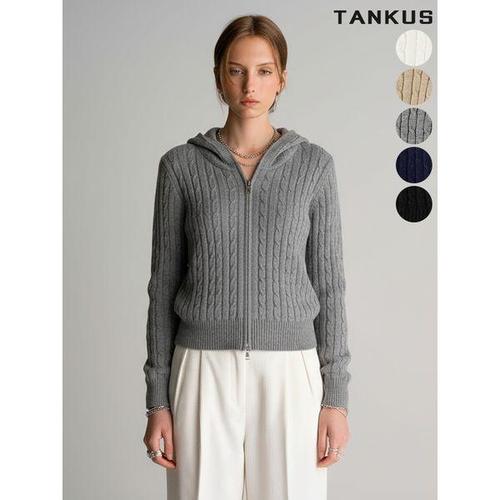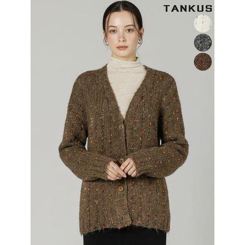 [탱커스]여성 울 혼방 꽈배기 박스 가디건