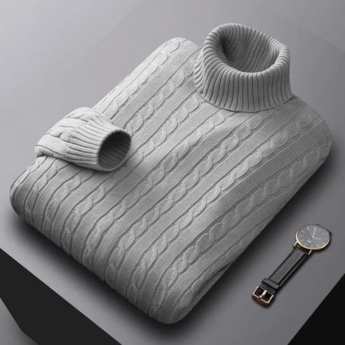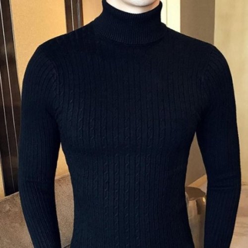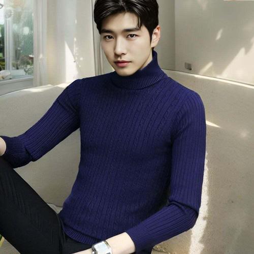 [모로엠]남성 베이직 꽈배기 패턴 목폴라 스웨터 ON-KN-QWFLDFJH