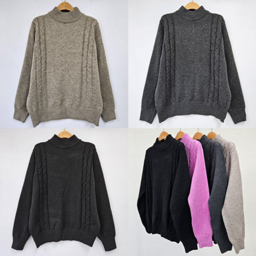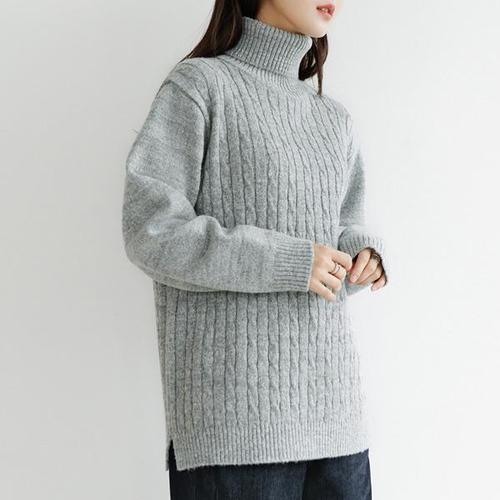 [옷자락]여성 오버사이즈 클래식 꽈배기 터틀넥 니트 긴팔