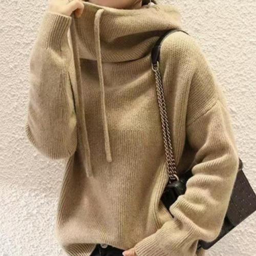 겨울 목폴라 터틀넥 니트 스웨터 솔리드 루즈핏 여성후드 WFL8BDE