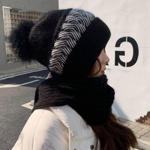 4컬러 겨울 방한템 목도리 일체형 털방울 니트모자 WFKXKJU