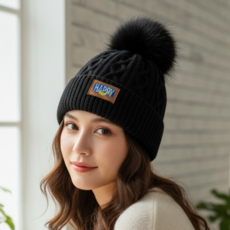 여성 포근 꽈배기 털방울 모자 WFFQF0Q