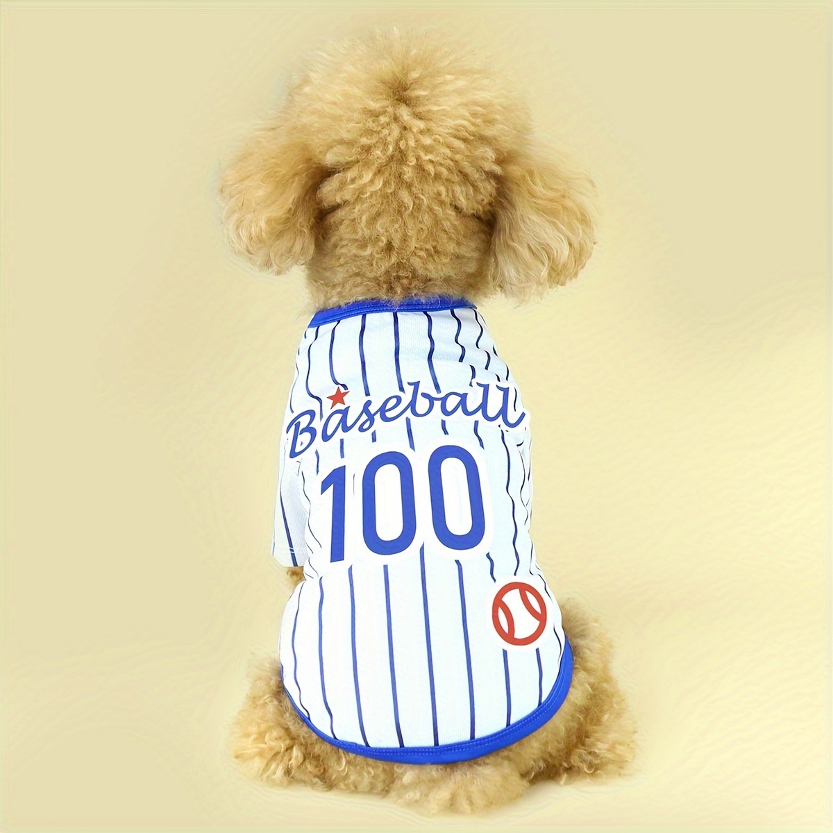 TEMU 대형, 중형, 소형견을 위한 스포티 강아지 티셔츠를 소개합니다. 뒷면에는 'Baseball 100' 텍스트가 특징이며, 패션과 운동성을 융합하여 활발한 털옷 친구를 위한 디자인입니다.