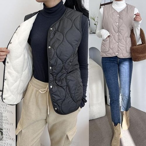 [하프클럽/셀러허브_여성트랜드패션]누빔 털조끼 털안감 데일리 여자 패딩