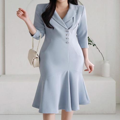 [모리스커밍홈][55-77]테일러드 카라 버튼 머메이드 원피스_M2603OP036B