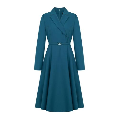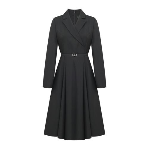 [스타일온미][루이스엔젤] 클로라 랩 디자인 투버튼 테일러드 카라 미디 A라인 플레어 원피스