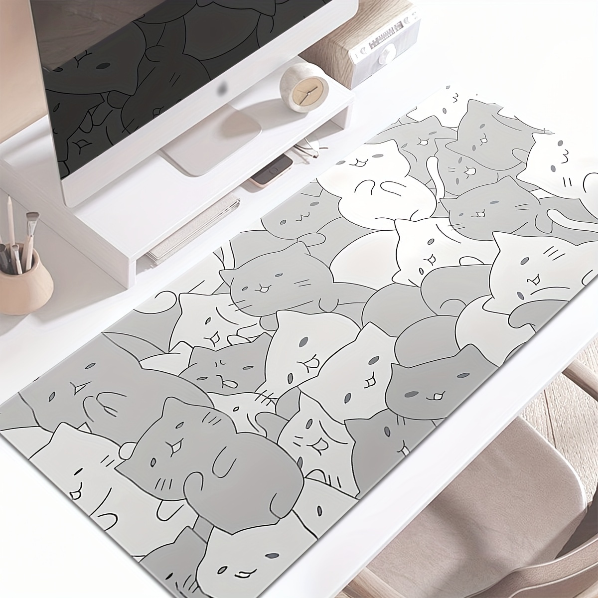 TEMU 1개 귀여운 회색 카와이 고양이 마우스 패드 | 미끄럼 방지 고무 뒷면, 폴리에스터 표면, 사랑스러운 스타일, 사무실 사용에 적합