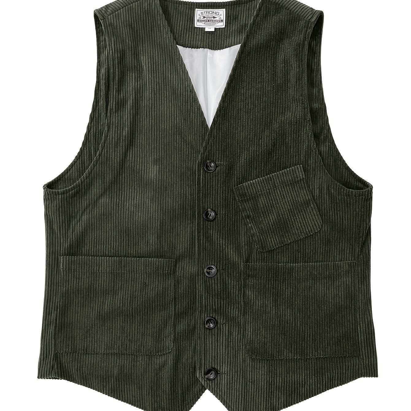 TEMU 남성용 빈티지 코듀로이 조끼, 영국 스타일 비즈니스 캐주얼 아우터웨어, 솔리드 컬러 미국식 싱글 브레스트 V넥 조끼