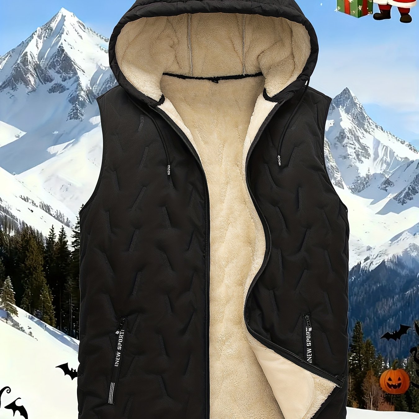 TEMU Pearson OBM 남성 솔리드 컬러 후드 조끼, 스타일리시하고 캐주얼한 민소매 따뜻한 두꺼운 재킷, 가을 및 겨울에 적합