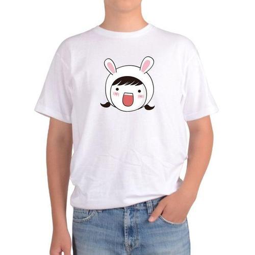 [에이치플러스몰]길단 아시아핏 반팔티 놀라는 토끼소녀 캐릭터 토끼모자 소녀얼굴그림 다양한색상 전사..